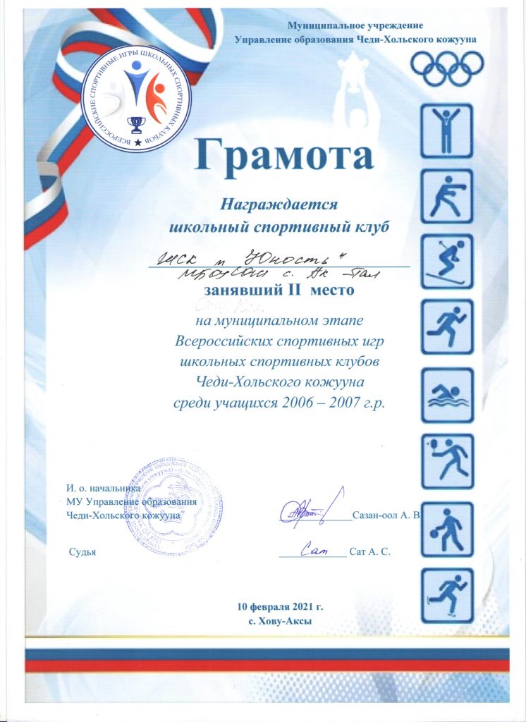 Школьный спортивный клуб «ЮНОСТЬ» Лицензия МБОУ СОШ с. АкТал устав-ШСК-Юность-1Скачать Положение школьного спортивного клуба Приказ-о-создании-в-школе-спортивного-клубаСкачать план-работы-ШСК-Юность-1Скачать КАЛЕНДАРНЫЙ-ПЛАН-ФИЗКУЛЬТУРНО-СПОРТИВНЫХ-МЕРОПРИЯТИЙ-на-2023-2024-у-г.Скачать расписание-секцийСкачать протокол-собрания-представителейСкачать
