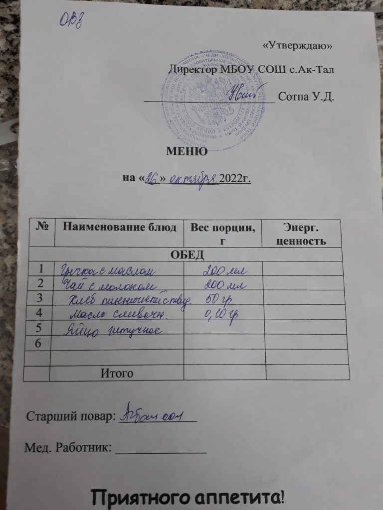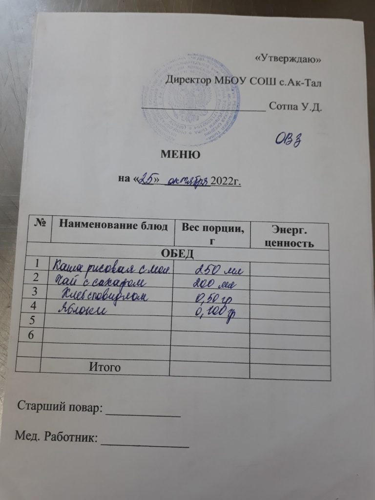 10-дневное меню МБОУ СОШ с. Ак-Тал утвержденное