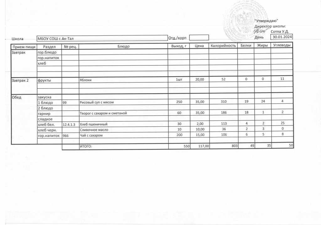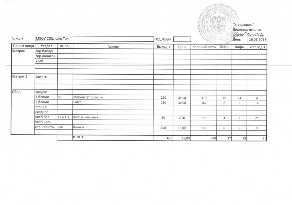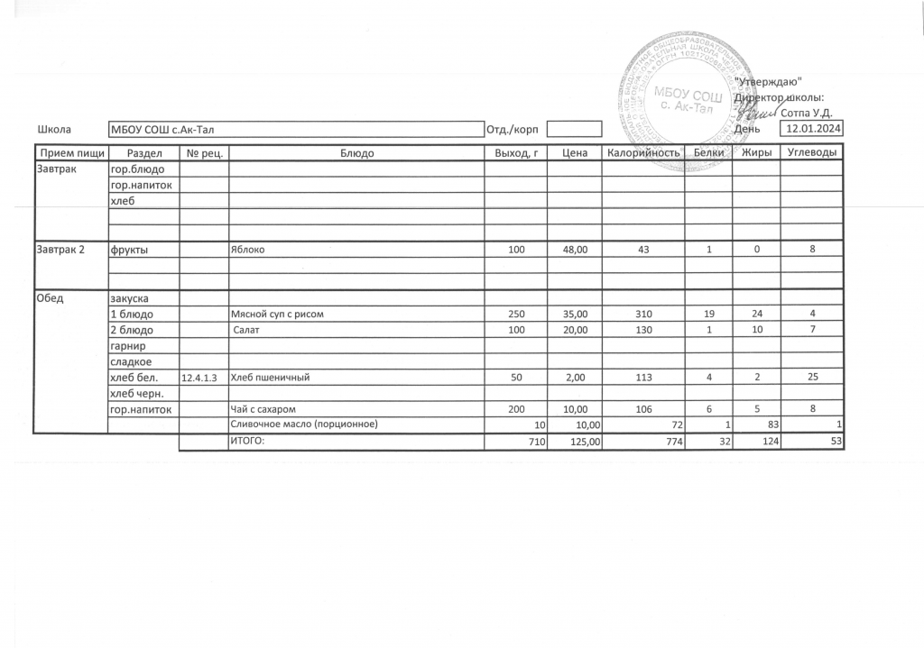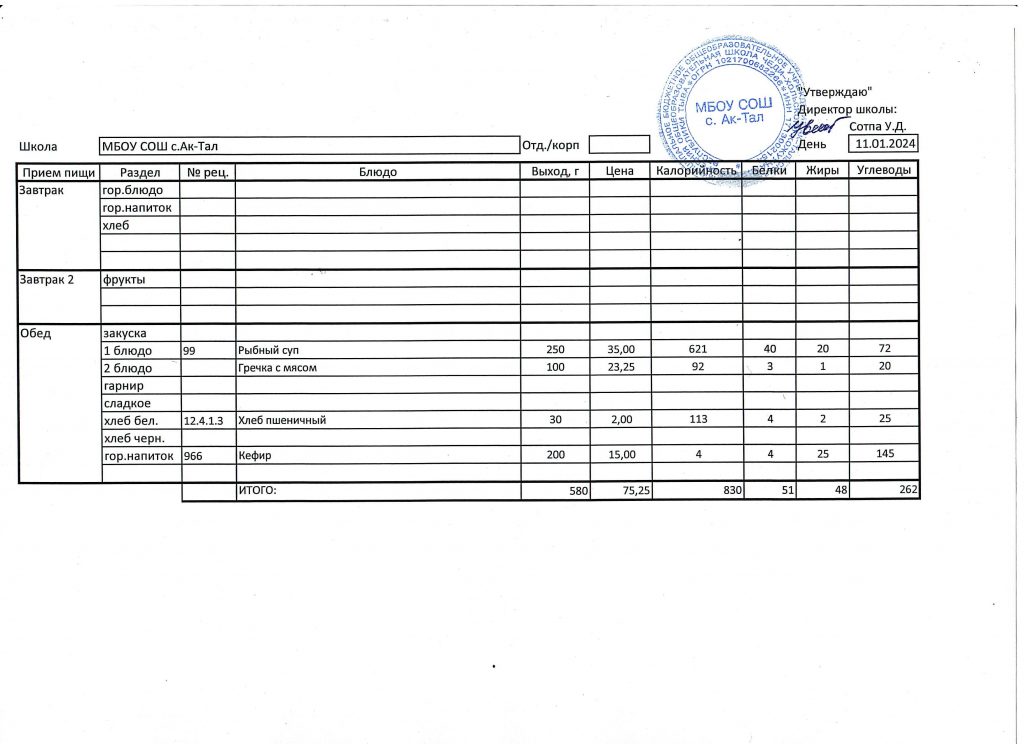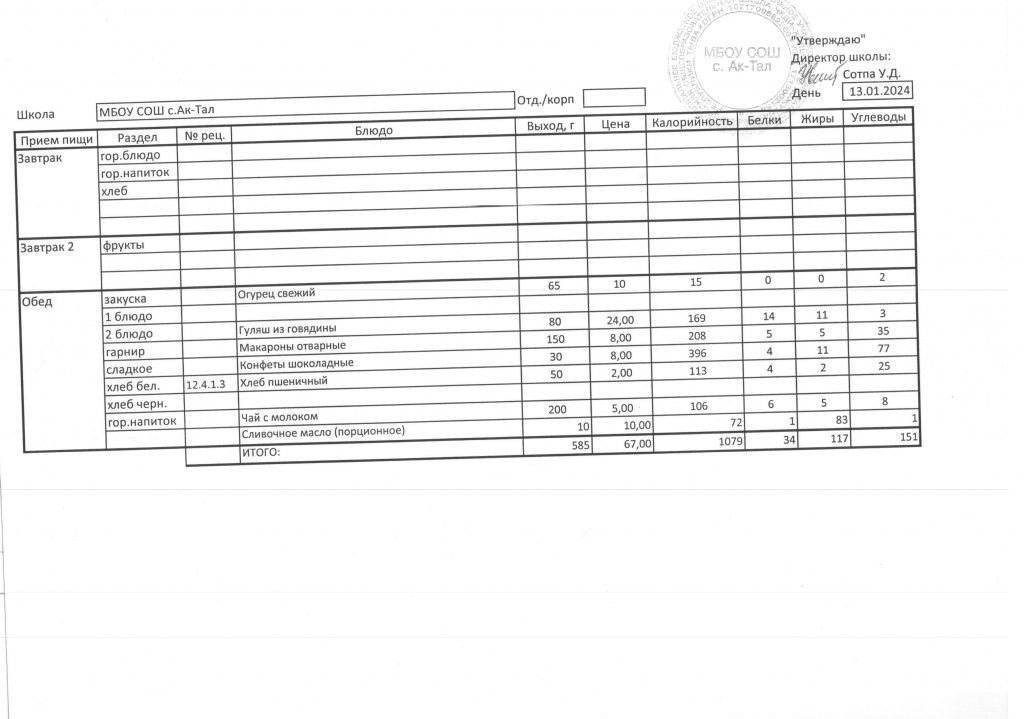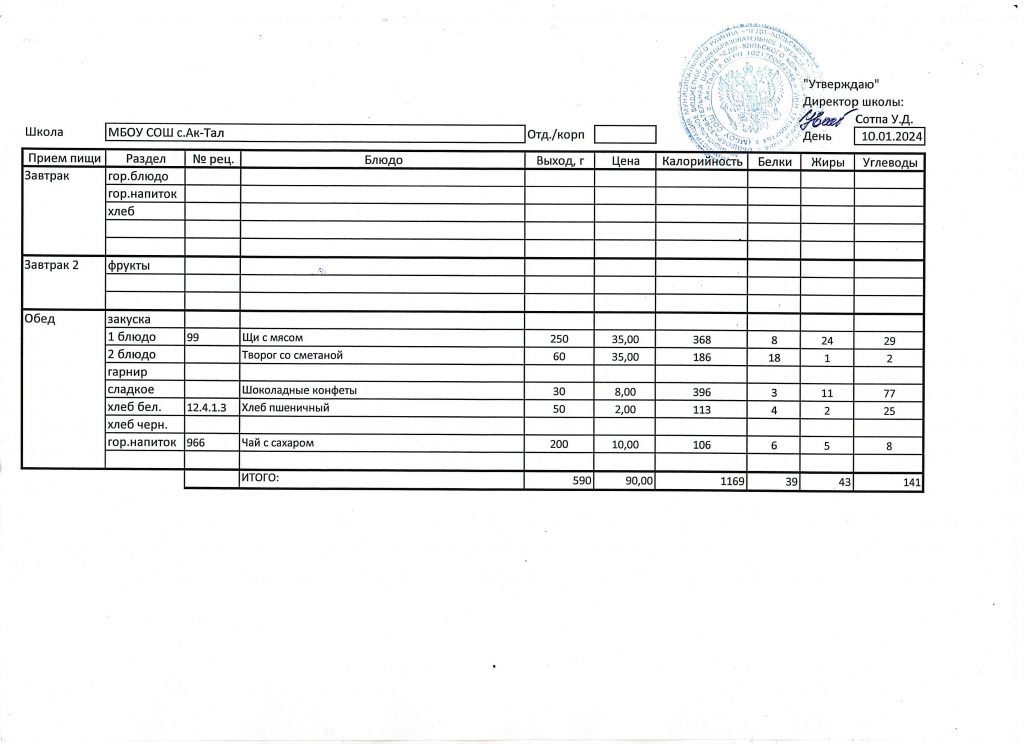 10-дневное меню МБОУ СОШ с. Ак-Тал утвержденное