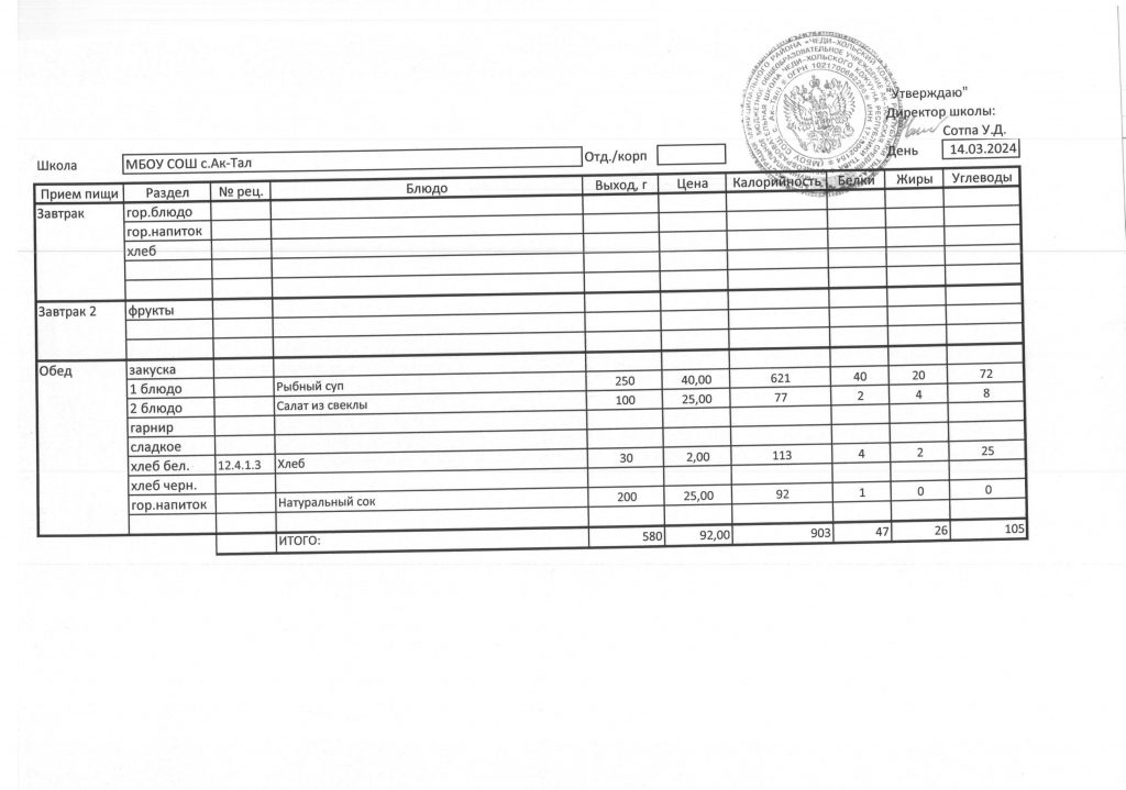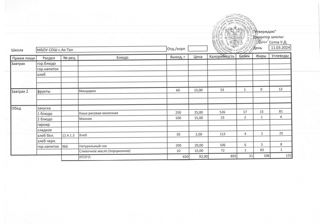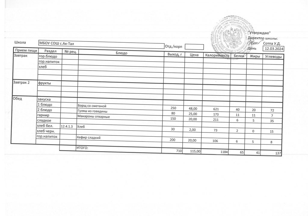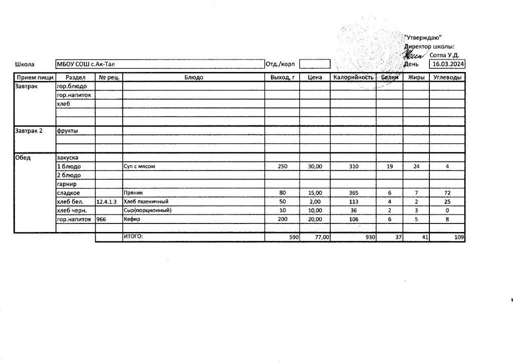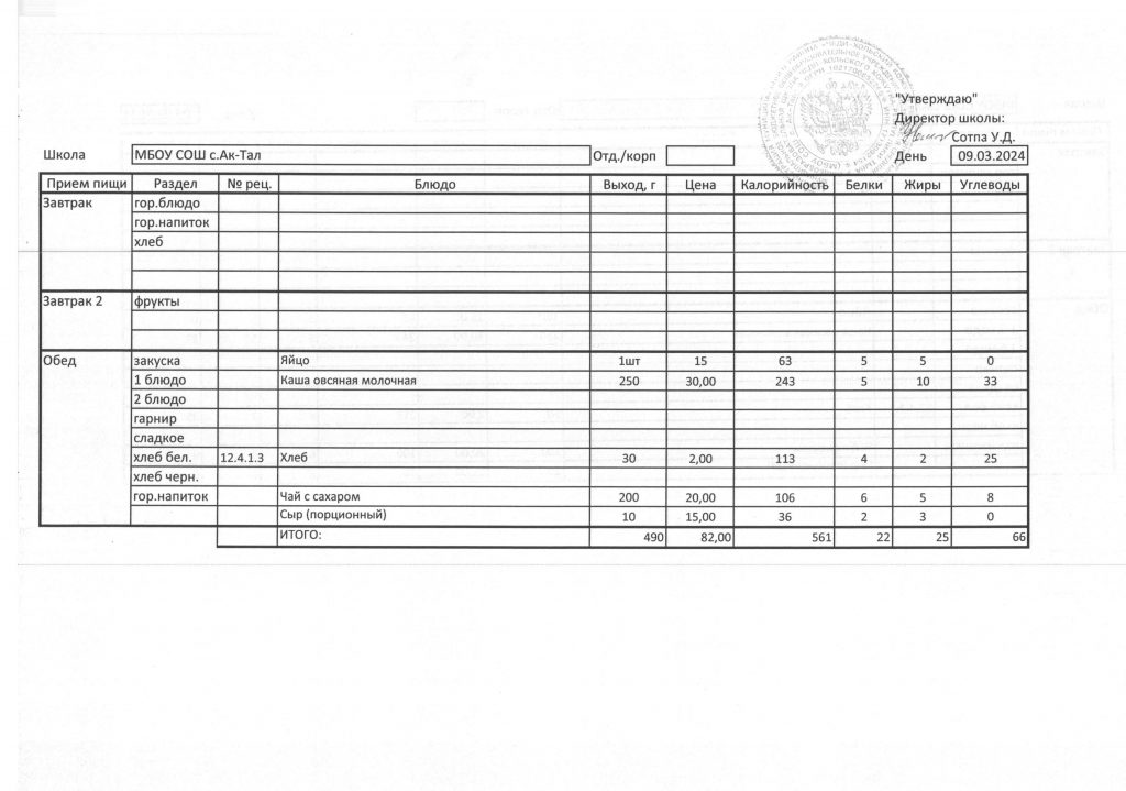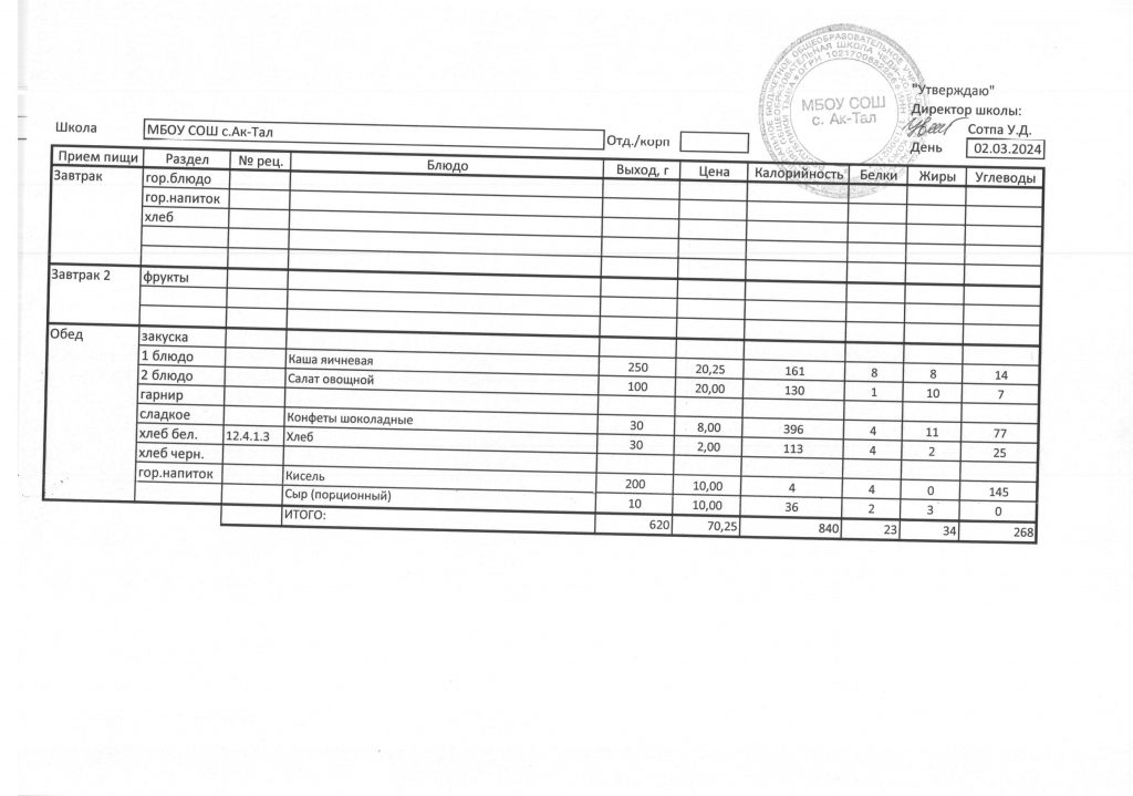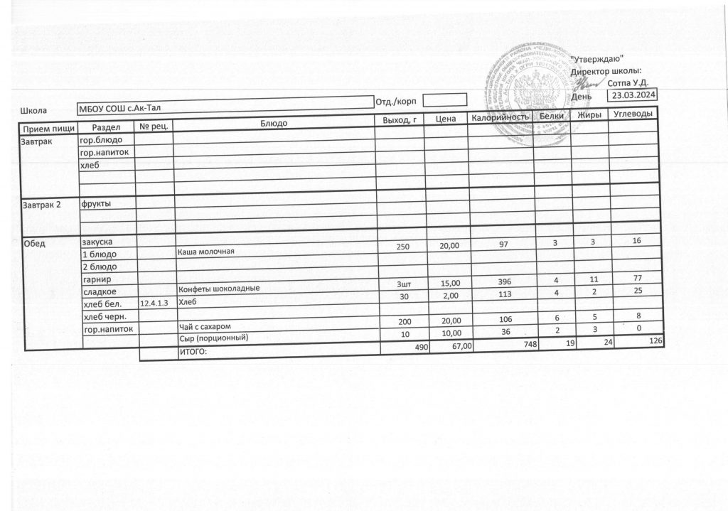 10-дневное меню МБОУ СОШ с. Ак-Тал утвержденное